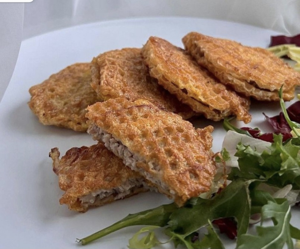 Склад: вафельний корж, куряче філе, сир моцарелла, сіль,перць чорний молотий, яйця курячі.