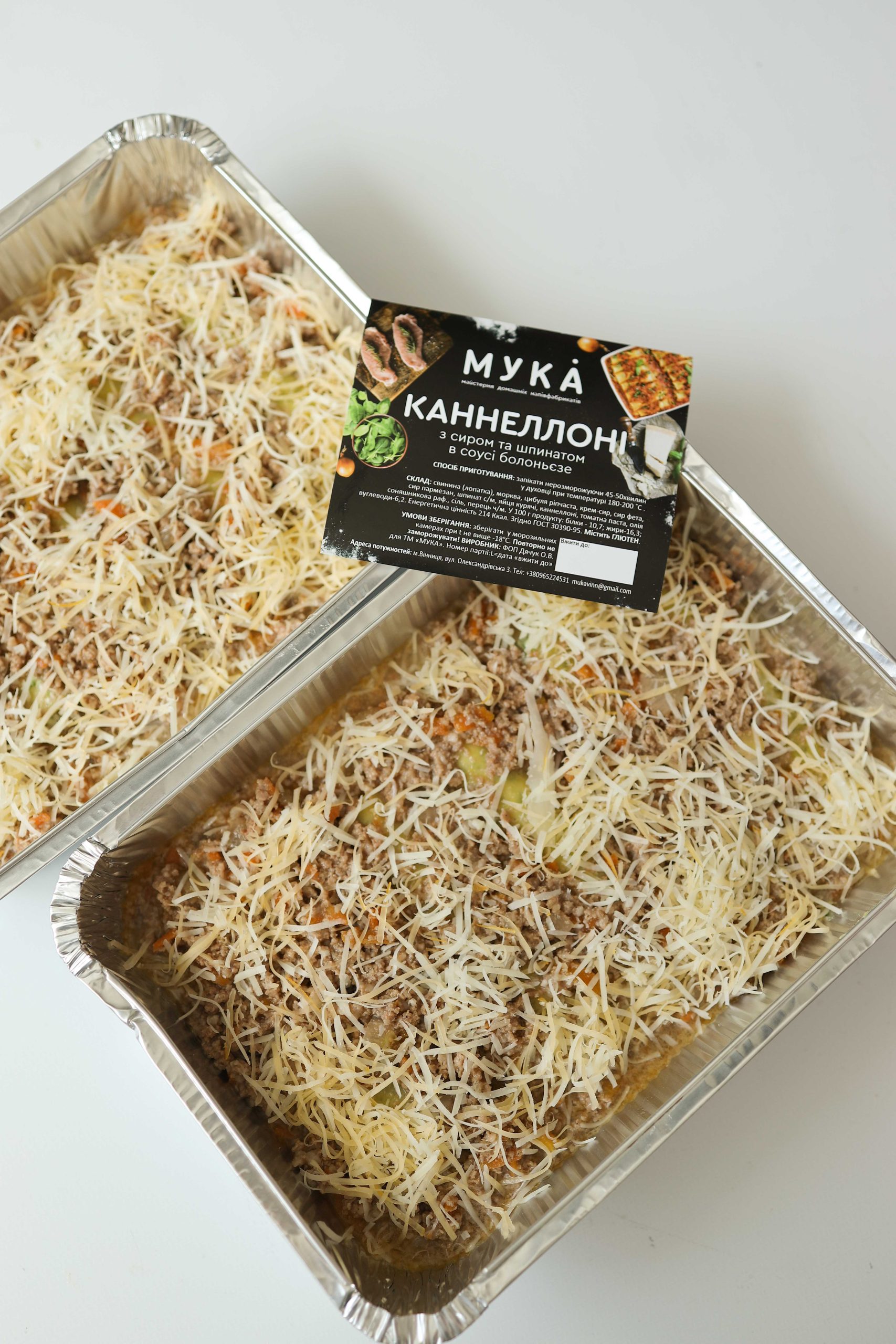 Каннеллоні з сиром та шпинатом в соусі болоньєзе